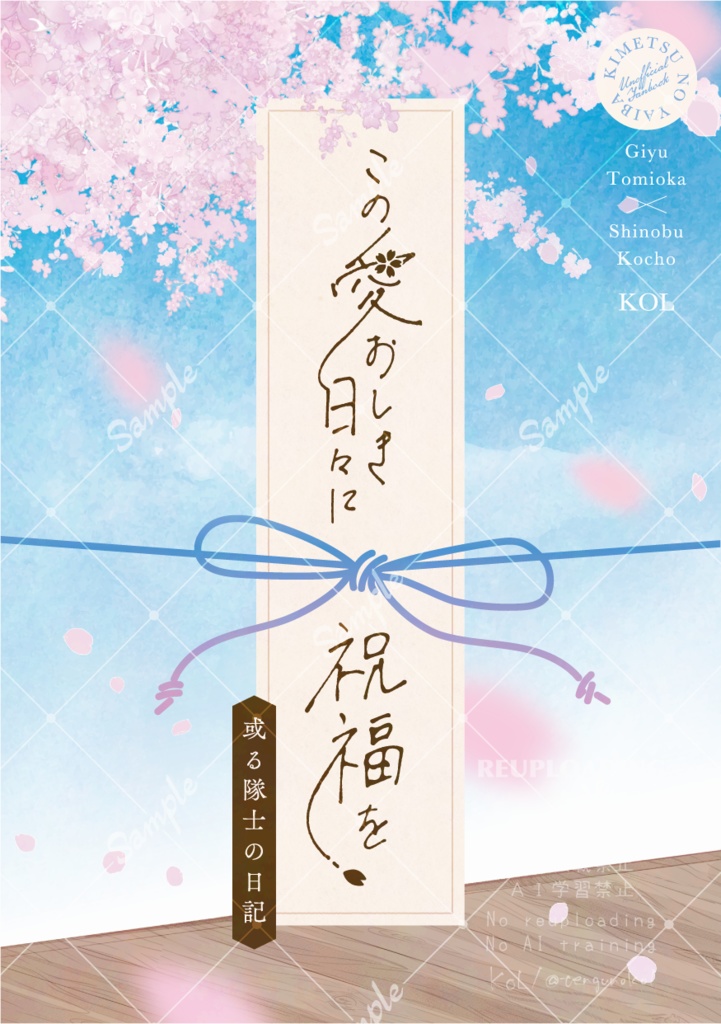 10月中旬頃頒布開始予定 冨岡義勇×胡蝶しのぶ A5/124p/イラスト・漫画・小説/全年齢/大正軸 ⚠注意⚠ ・原作沿いです。生存ifではありません。 ・最終決戦後のネタバレを含みます。 ※原作沿いのふたりの結末は見たくないという方は避けた方がいいと思います。 ・軽度の性的描写があります。 【内容】 とあるモブ隊士が上官である水柱・蟲柱の様子を日々観察して綴った絵日記というコンセプトのぎゆしの本です。 ふたりの距離感を「それで何もないなんて嘘でしょう?」と色眼鏡で見るモブ視点の絵日記風文字入りイラストがメインです。 後半は観察日記の「裏」として、モブの知らない前日譚・後日譚、種明かし、あるいはモブが目撃したその後のふたりの様子を、漫画・イラスト・小説混在で収録しています。 小説には、よしの様(pixivID:20291703)よりWeb掲載当時書いていただいた2本に未発表の1本を加えた計3本をご寄稿いただきました。本をお迎えくださった方には、後日そのうちの1本の続き(成人向け)を挿絵付きでパスワード限定公開する予定です。(未成年の方は閲覧禁止です) 基本的にはWeb上で公開した再録が主ですが、一部描き下ろしとリメイク、加筆修正も含まれます。
